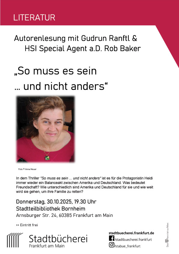 Lesung am 30. Okt. 2025, So muss es sein, … und nicht anders, Gudrun Ranftl, Autorin, Kim Winter, Frankfurt, Roman, Schriftstellerin, Spannung